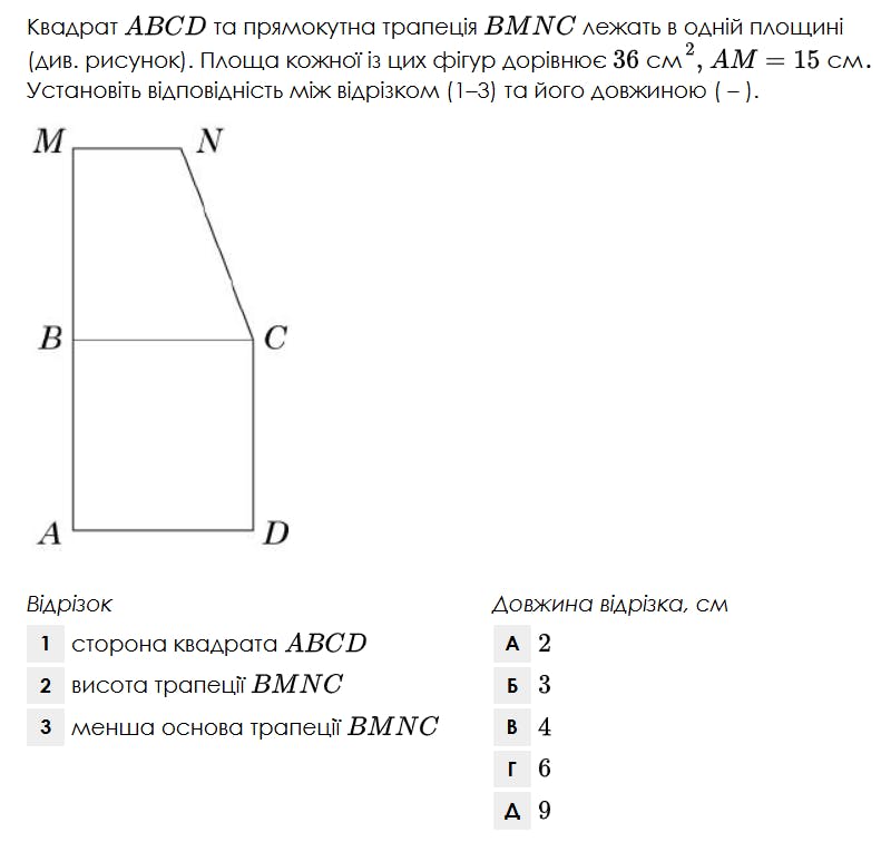 Відрізок:3. Менша основа трапеції BMNC